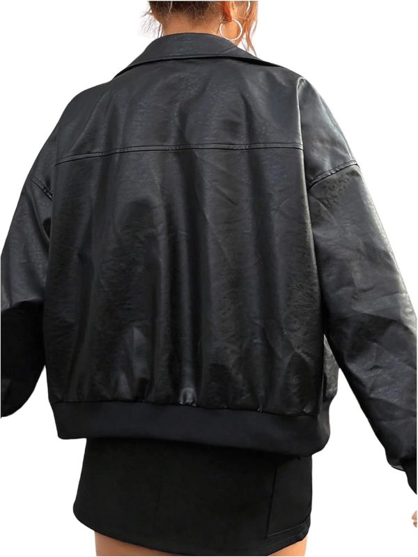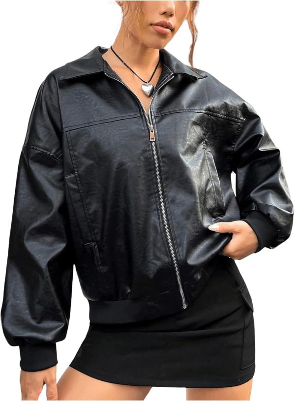 • Feature: Womens faux leather jacket, pocket, zipper, collared neck, drop shoulder, long sleeve, loose fit, chic and fashionable look that exudes confidence and attitude